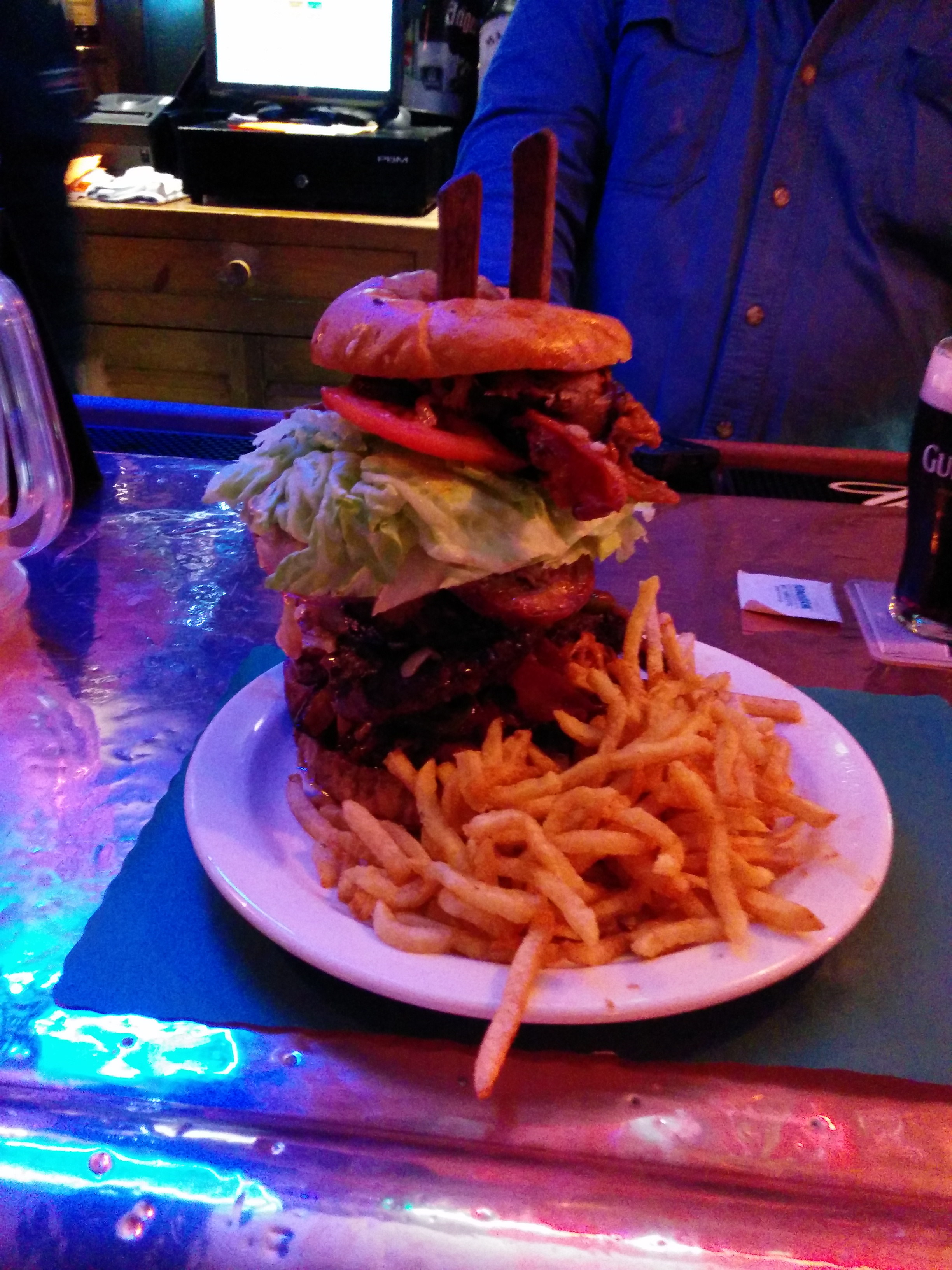 I don’t think anyone would call any of this healthy – even the “preparation” can be detrimental to your health. It is fun though, and I know when I see the opportunity for a free T-Shirt I jump on it. I’ve tried everything from hot wing contests (won twice), to gigantic pizzas (lost) to the monstrous burger above (won). It’s stupid, silly, disgusting and unhealthy, but it is fun to try these challenges every now and then. I don’t do any preparation, I’m just a hungry guy who happens across some of these challenges and figures why not? I don’t think I’ve ever felt sicker than when I finished that burger, but hey, I got a new T Shirt so it balances out.